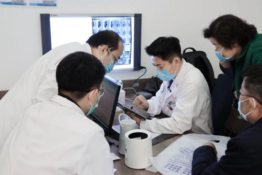实际上,短视频所呈现的只是他的工作片段。 作为知名三甲医院的主任医师,李维新几乎每天、甚至每周的工作日程都安排得满满当当。周一、周四是手术日,平均每天完成9-11台手术;周二、周三、周五则分别有半天在不同院区坐诊,其余时间还要处理其它事务。 除此之外,他还在政策允许的范围内探索多点执业,到外地为患者做手术,甚至一周要跑2-3个城市,周末也难有完全属于自己的时间。 不过在李维新看来,这样的工作强度对神经外科医生来说,是日常“标配”,“许多医生既要承担繁重的临床工作,还要兼顾科研、写论文、带学生等多重任务,工作量之大,超过普通人的想象。” “其实视频里所展示的内容也反映不出我们实际的工作量,很多时候,我们下班以后还有很多工作要做。”李维新说,他和同事有时晚上手术结束可能已接近凌晨,但第二天依然要按时上班。 “如果没有充沛的精力,不仅长时间的手术站不住,也容易犯困。”李维新说。  门诊里的李维新(中间)