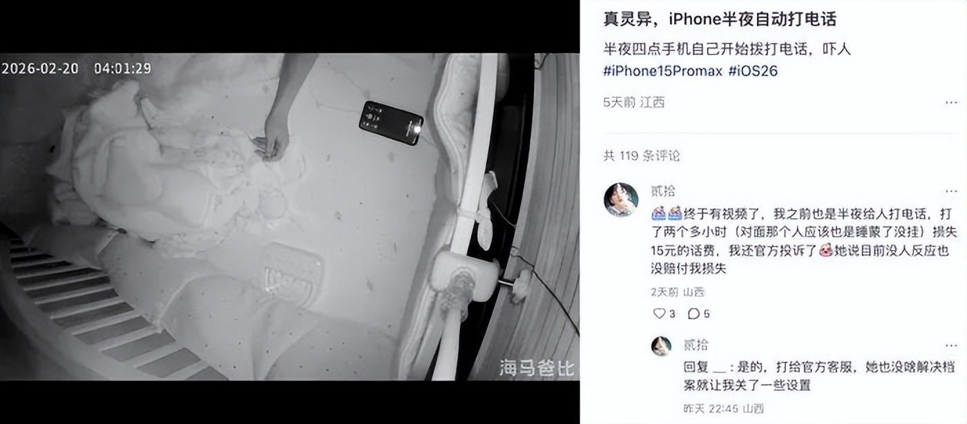 2月15日凌晨2:06,一名用户使用的iPhone17Pro Max在锁屏状态下,自动拨通了其十年前初中班主任的电话。通话持续不到十秒,对方接听后挂断。该用户在公开记录中表示,当时设备电量为97%,并未处于充电状态,且开启了睡眠模式,并未触发语音助手或进行手动操作。事后查看通话记录时,这通凌晨的电话显得尤为突兀。