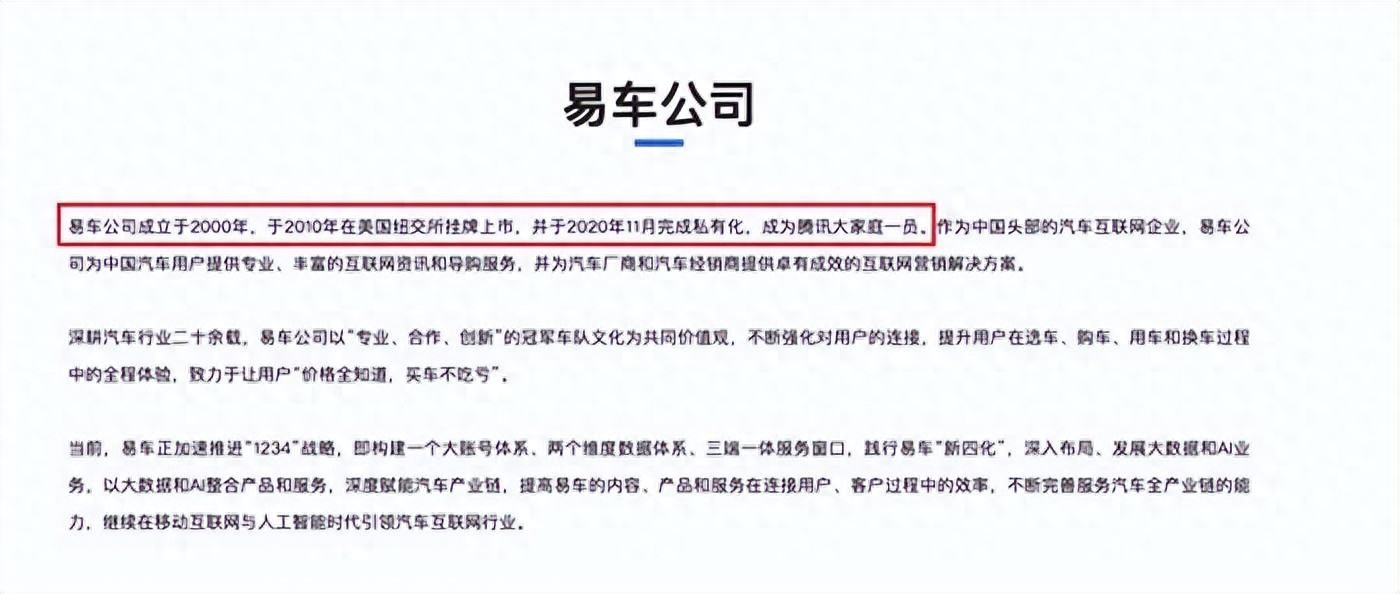 易车公司官网以及公开资料显示,易车网由蔚来创始人李斌于2000年创立。2015年1月,易车网、京东和腾讯联合宣布,三方已达成最终协议,京东和腾讯以现金和独家资源的形式对易车网投资约13亿美元。 2018年1月,李斌卸任易车CEO,后不再参与易车日常运营决策。 2020年11月,易车私有化时,李斌将持有的10.9%易车股份出售给腾讯和黑马资本组成的买方团,不再是易车集团主要股东。 相关知情人士还表示,当年上述收购方是收了海外主体,海外主体公司通过VIE结构控制的国内公司,国内公司并未做股东变更,仍是易车的运营主体公司,但实际控制人不是李斌。