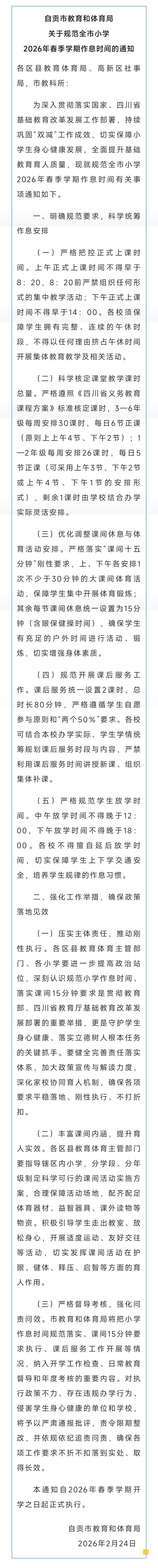 [盐都杂谈] 自贡市发布最新通知!事关全市小学作息时间——
