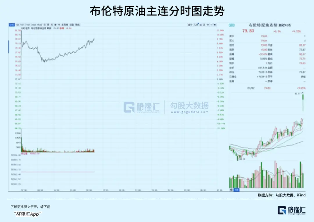 截至发稿,布伦特原油报79.97美元/桶,涨幅为9.72%。
