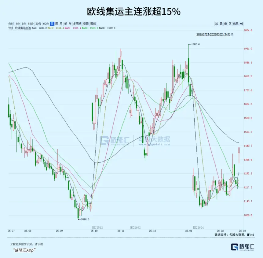 但短时间内,油价较2月低点累计最高拉升也近20%。相比之下,从1月份以来,欧线集运今天才得到一次比较大幅度的爆发。