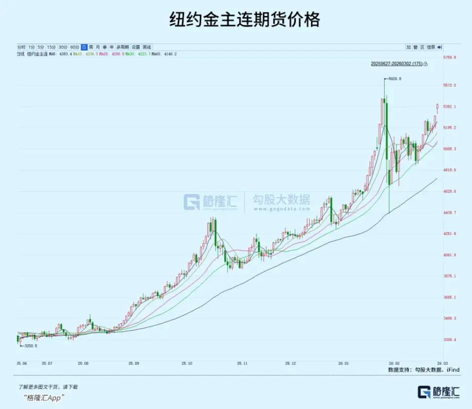 而贵金属方面,金价涨幅也小幅收敛,但依然坚挺。前期在5000美元/盎司附近震荡消化一段时间之后,最终也在这场战争催化下一路上行。如果局势迅速向美国倾斜,也可能会兑现一部分。