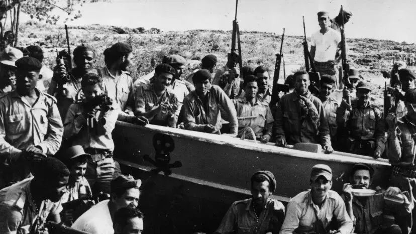 猪湾事件中,古巴民兵和军队在吉隆滩庆祝击败美国雇佣军的胜利(图源:美国国家档案馆)