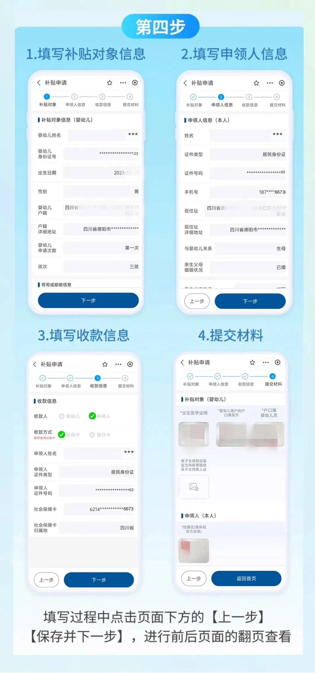 2026年1-3月审核通过对象的补贴,将在5月初发放; 4-6月审核通过对象的补贴,将在8月初发放; 7-9月审核通过对象的补贴,将在11月初发放; 10-12月审核通过对象的补贴,将在2027年2月初发放,以此类推。 申请流程如下⬇️ 据了解 四川2026年育儿补贴申领渠道未变 公众可通过“线上+线下”渠道 进行申领 ↓ 申领渠道 1.申领人可通过支付宝或婴幼儿户籍所在省份的政务服务平台申领入口,进入育儿补贴信息系统。 2.线下申请需到婴幼儿户籍所在地乡镇政府(街道办事处)现场办理。 3.儿童福利机构应到机构登记地所在乡镇政府(街道办事处)现场办理。 操作流程 如果婴幼儿已申请过育儿补贴,且信息没有变化,则可直接进行一键续领操作,简化申领流程。 如果婴幼儿已申请过育儿补贴,但信息有变化,只需要点击修改,系统会将第一次申请信息自动带入,申领人只需针对有变动的内容进行修改再提交就可以了。 如果婴幼儿今年是第一次申请育儿补贴,可以提前准备好相关证件信息,如下图操作流程进行相关信息填写,提交成功后等待工作人员审核即可。