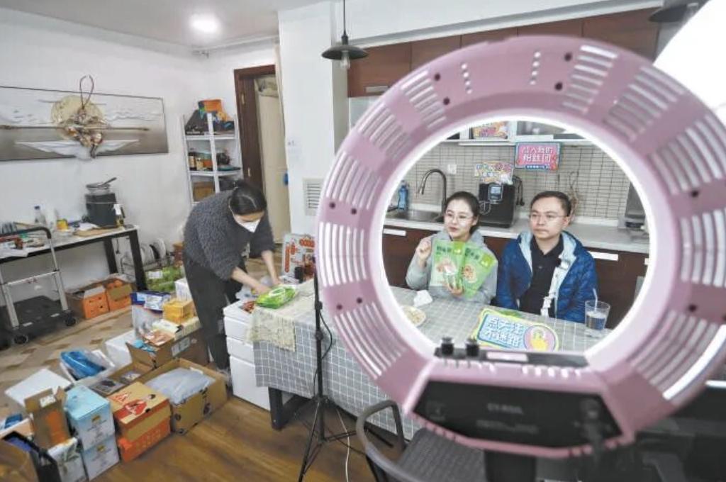 蔡磊和妻子在直播间。