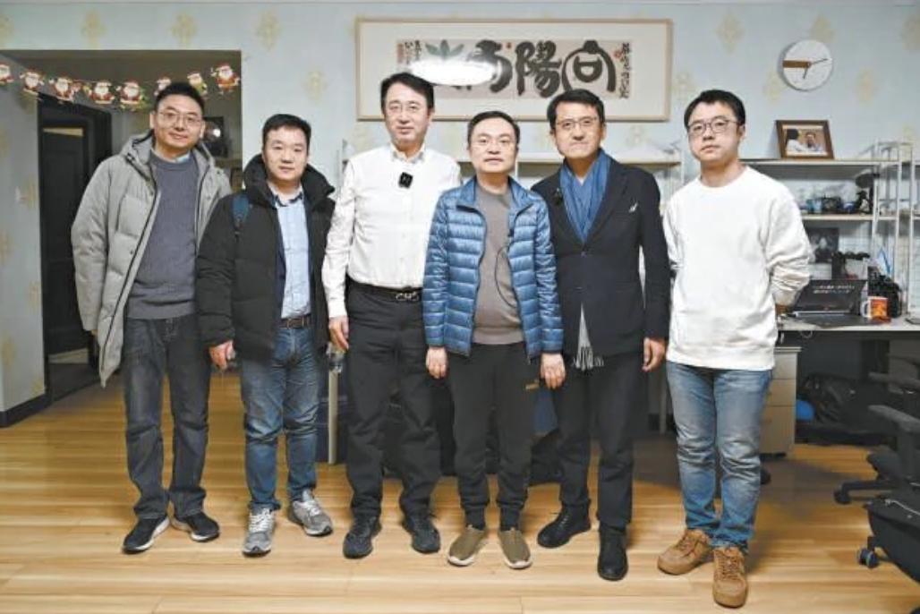 蔡磊(左四)和北医三院神经内科主任樊东升(左三)、清华大学长聘教授贾怡昌(右二)及科研团队合影。 受访者供图