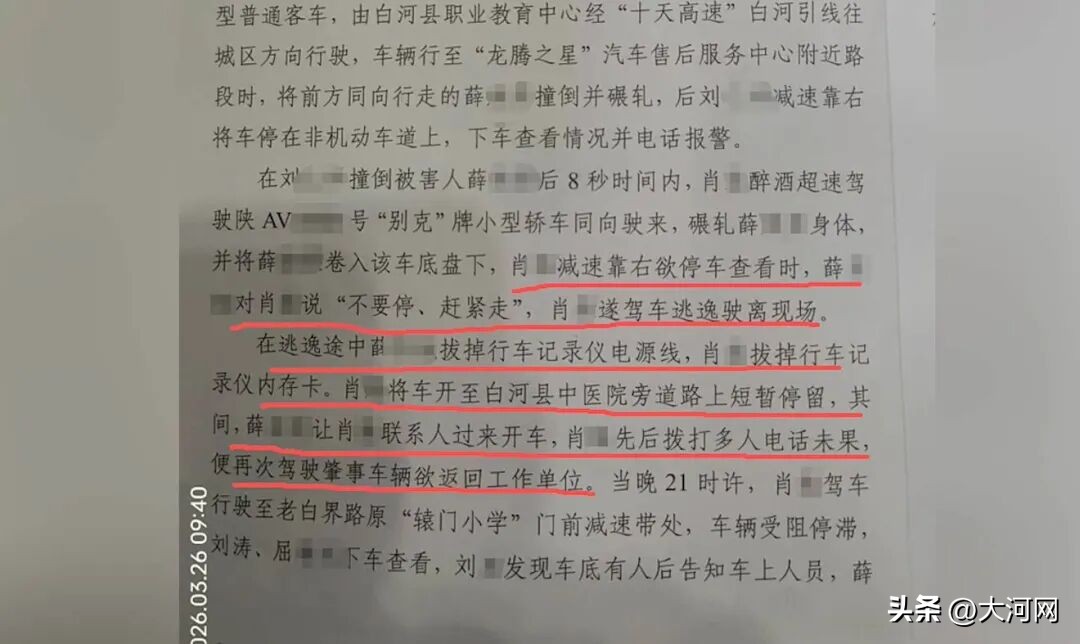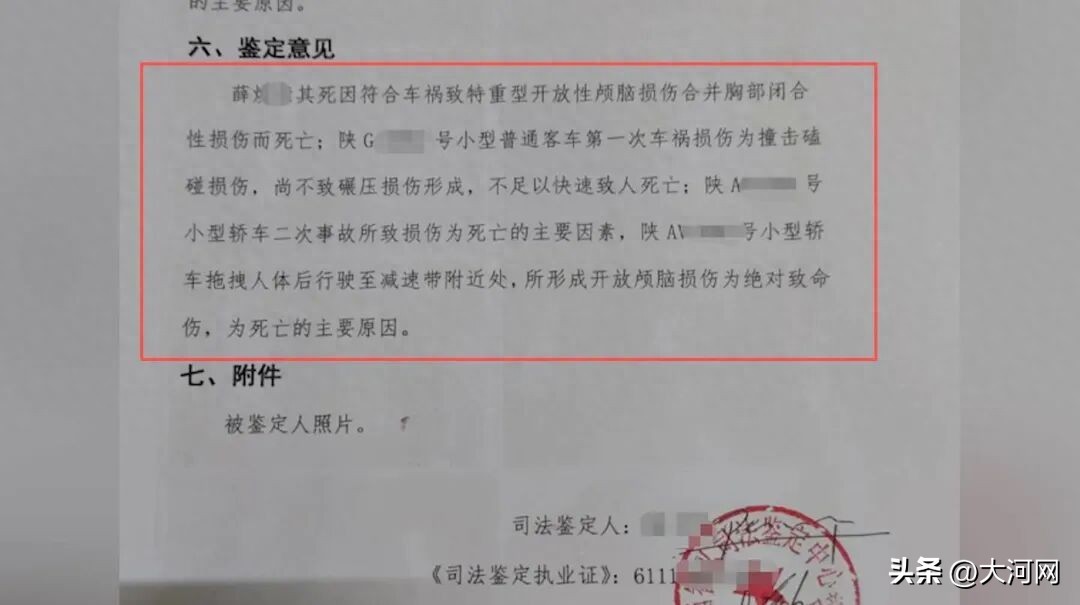 2024年4月29日晚,49岁女教师薛某荣回家途中,先被刘某的车撞倒碾轧,后又被肖某的车卷入车底拖行5.9公里后死亡。经查,事发时,第二辆车上共载5人(除司机肖某外,车里还有薛某旭、赵某、屈某、刘某),均在陕西交控集团白泉分公司白河路产养护管理中心担任过重要岗位。该车驾驶人肖某不仅醉酒、超速驾车,事发后还涉嫌肇事逃逸、串通“顶包”、销毁有关证据等行为。 次日家属才接到通知,看到遗体双手呈抓握状、全身多处拖伤碾压痕迹,坚持追责。 死者妹妹薛焕莉不认可首次尸检结果,2025年8月二次鉴定表明,二次事故损伤是死亡主因,拖拽致开放颅脑损伤为绝对致命伤。
