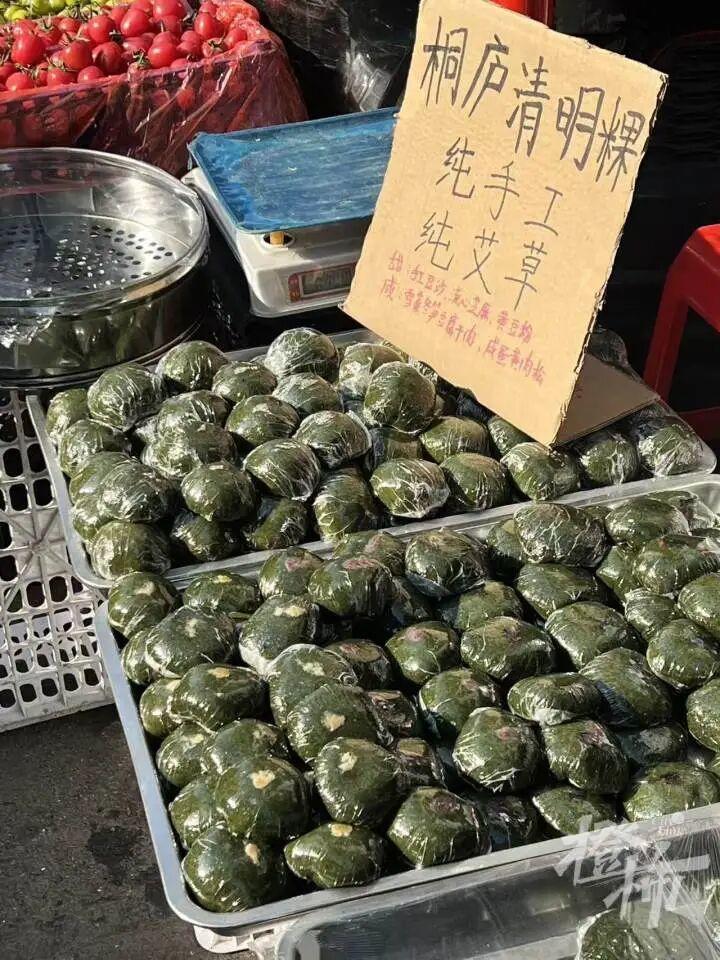 同样是菜市场,这两天王家弄农贸市场的青团也很抢手,有单位团购的,也有线上要求发快递的,来晚了甚至买不到。