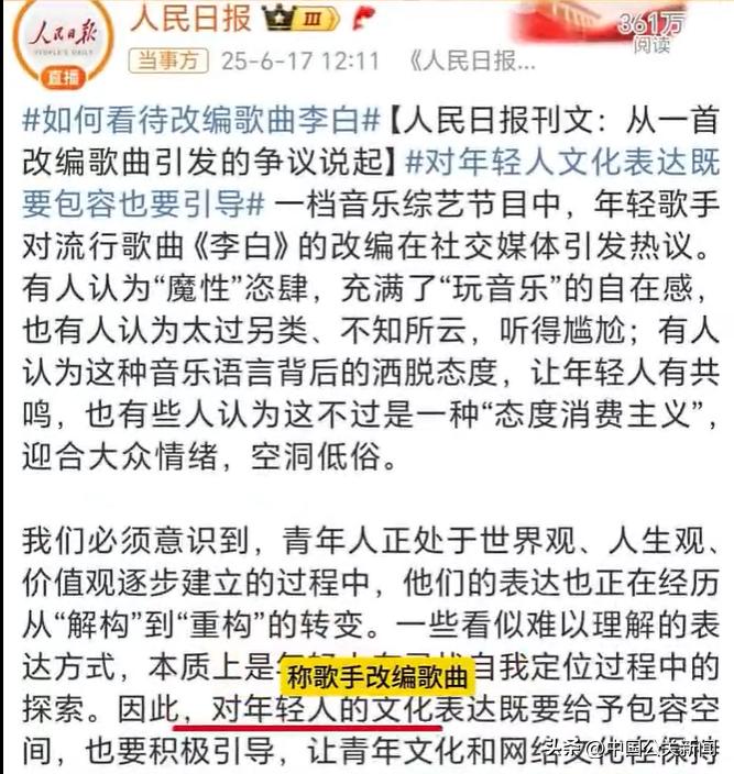 更微妙的是,这事还有个舆论预热包袱。单依纯之前在节目里改编《李白》,把这首歌做成了另一种完全不同的舞台表达,当时就已经争议很大,还被人民日报点评,有人觉得新鲜,有人觉得离谱,有人甚至觉得这已经不是改编。