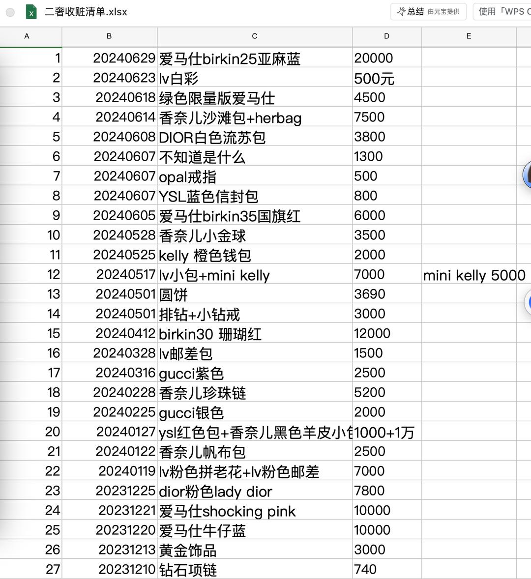 岚儿粗略统计二手奢侈品店收购的包包和其对应价格