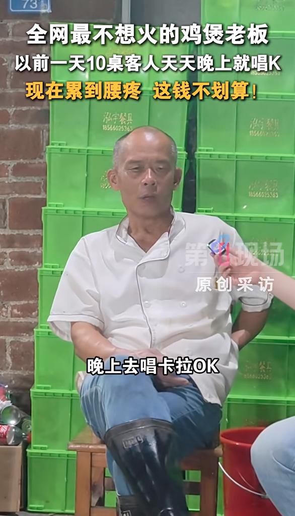 老板称累到腰疼,一直叹气:“以前一天10桌客人,收摊直接去唱卡拉OK,早上还能散步,悠闲又自在。现在火了,客人源源不断,累到腰疼,这种钱,赚得不划算。”
