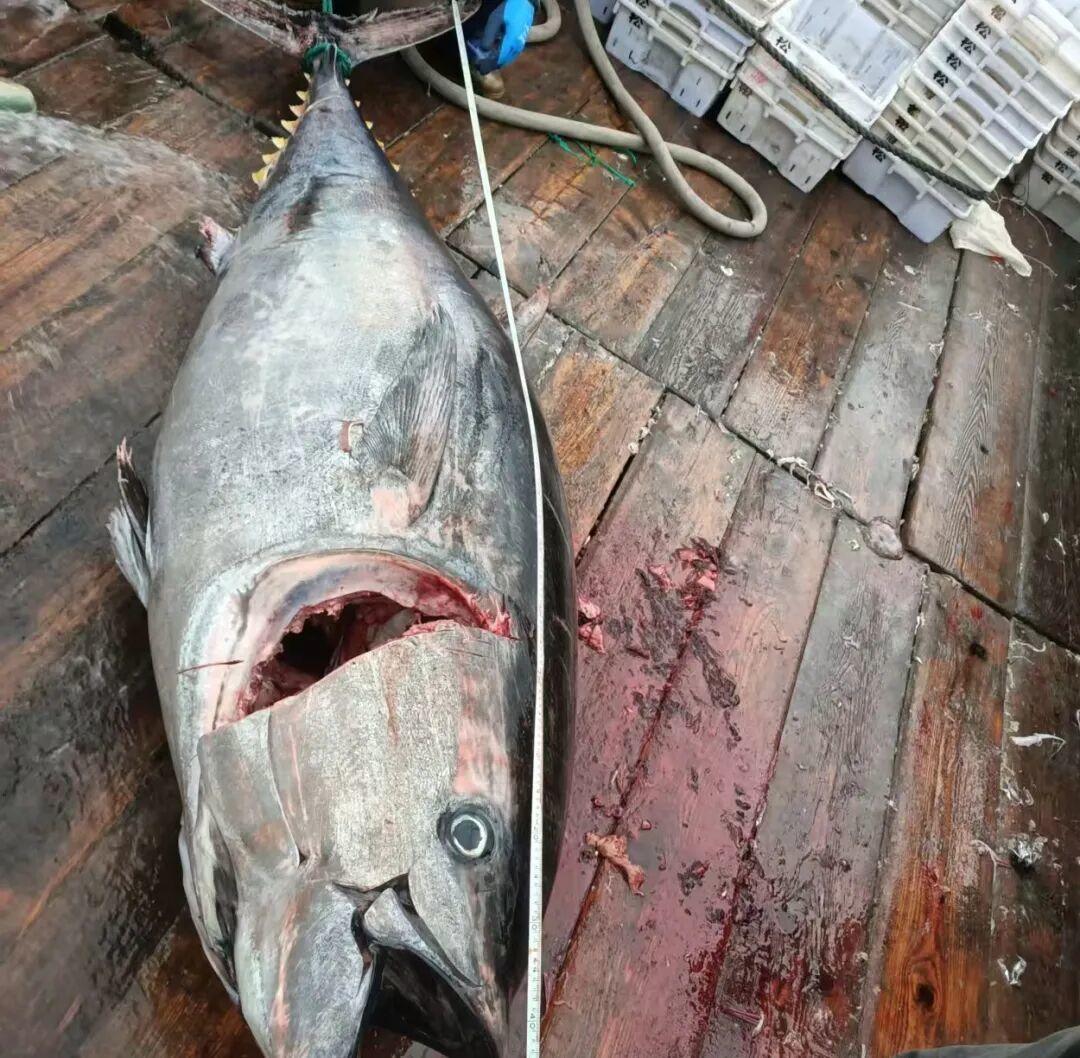 4月3日,有着30多年海洋捕捞经验的宁波奉化渔民范吉通,在东海渔区成功捕获两条重200公斤以上的野生蓝鳍金枪鱼。4月6日下午,两条大鱼运抵台州温岭,交由当地企业代售,业内预估总市值超10万元。 4月3日凌晨4时许,浙奉渔22097、22098号双拖作业船在东海1594海区,成功捕获两条单体重量均超200公斤的野生蓝鳍金枪鱼。鱼身长约2.5米,宽70—80厘米,厚度达40余厘米。据介绍,市面上普通金枪鱼大多重十来斤至几十斤,超100斤的已属少见,此次这般“巨无霸”级别的蓝鳍金枪鱼更是多年难遇。   正在海上作业的船老大范吉通,与记者视频连线时难掩激动。“我捕鱼三十多年,常年在东海作业,还是头一回见到这么大的金枪鱼,而且一次就遇上了两条。” 6日14时30分,两条巨型蓝鳍金枪鱼顺利运抵温岭。船老大委托当地一家水产超低温速冻公司代为储存和销售。后续,这两条鱼将经过精细分割处理,通过线上线下方式分批上市销售。 “以往我们在东海捕捞到的金枪鱼,大多只是十几斤至几十斤的规格。此次捕到的鱼重达400至500斤,这是我平生第一次见到,更难得一见的还是一次捕到两条,这也充分说明,东海海域的渔业资源日益丰富,生物种类也更加多样。”有着多年水产加工销售经验的温岭松门水产超低温速冻公司经理俞新岳兴奋地说。 作为高端刺身食材,该类金枪鱼顶级部位(如大腹)的市场零售价每斤已超500元,两条鱼的总市值预计超过10万元。 浙江省海洋水产研究所相关专家表示,蓝鳍金枪鱼属于大洋性洄游鱼类,通常成群活动,处于食物链顶端。此次超大体量个体在东海出现,实属近年来罕见,“这不仅印证了东海渔业资源持续恢复,也体现出东海在渔业管控、资源养护上取得实效,海洋生态环境正持续向好。” (来源:望潮客户端)