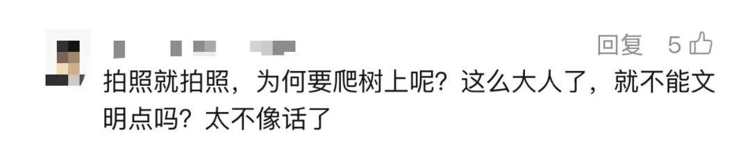 评论区 不少网友谴责 这样不文明的游园行为 “想到树枝会断, 没想到整棵树给干倒了。”