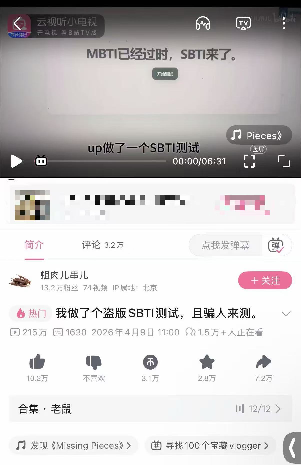 4月9日上午11时,一名B站(哔哩哔哩)博主发布视频《我做了个盗版SBTI测试,且骗人来测》,并提供了测试链接。该套SBTI测试复刻了此前网络爆火的MBTI的答题框架,但本质上是一个恶搞性质的娱乐产品。