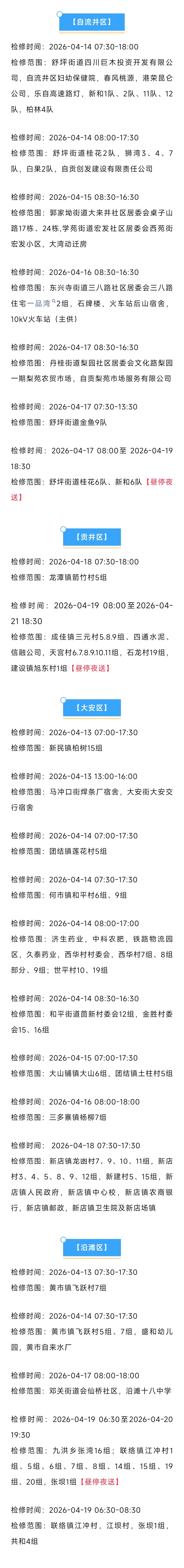 [盐都杂谈] 速看!富顺电网最新检修公告