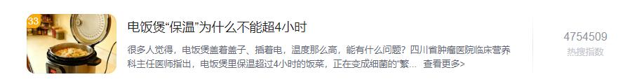 近日 #电饭煲“保温”为什么不能超4小时# 话题登上社交媒体热榜