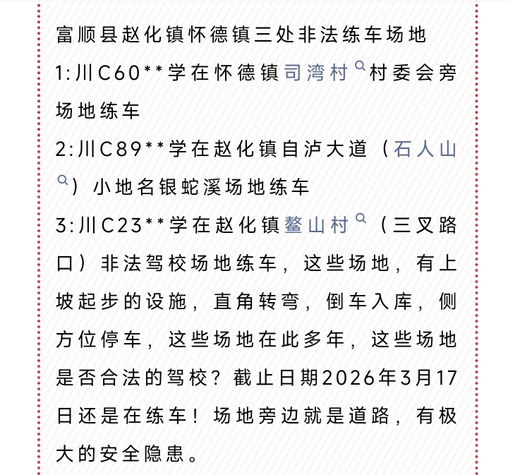 [盐都杂谈] 网友举报!富顺发现3处非法“驾校”!