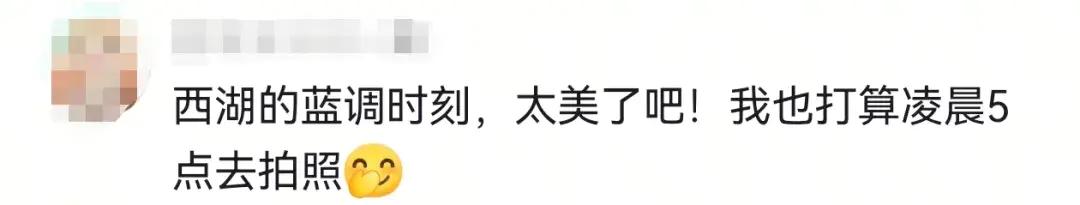 也有网友为西湖的蓝调时刻点赞。