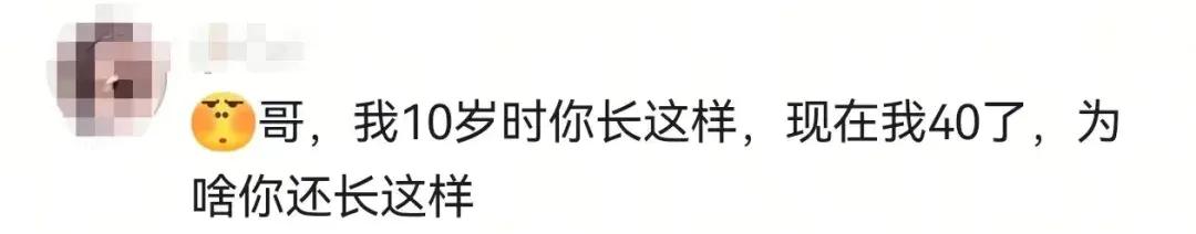 有网友感叹其“逆生长”的冻龄状态,“不知道该喊叔还是哥了,我小时候他就长这样,我孩子都上小学了他还长这样!”