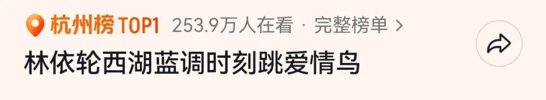 近日,“林依轮西湖蓝调时刻跳爱情鸟”的词条,冲上杭州榜热搜。