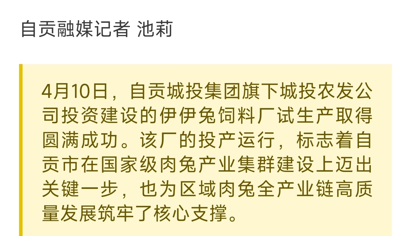 [盐都杂谈] 年产能12万吨!自贡城投农发伊伊兔饲料厂成功试生产