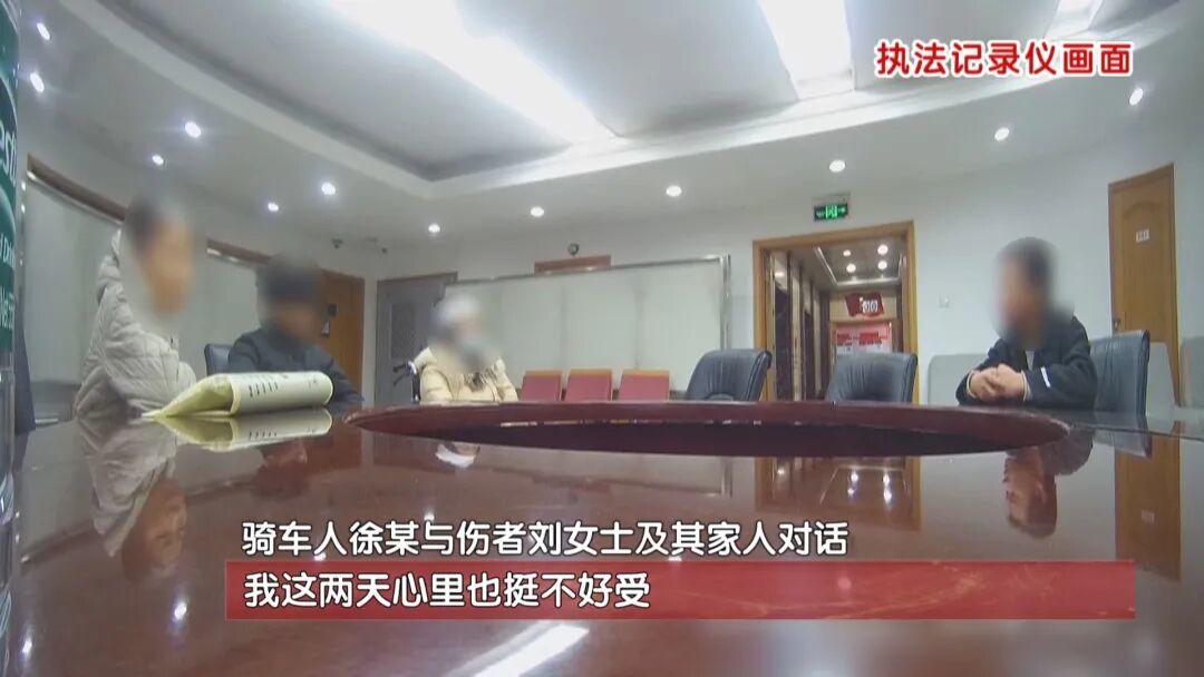 面对民警,徐某一开始三连否认:“我真不知道什么事”“是她突然冲出来,我以为碰瓷”“他们没拦我,我就走了”…… 可监控铁证如山:刘女士倒地流血,他没有报警、没有救助,直接逃逸。 双方见面:一句“对不起” 换5日拘留 面对民警的追问,徐某无言以对。得知撞伤自己、随后逃离现场的骑车人被民警查获,刘女士和她的家人也立即赶到了交通队。双方在民警的调解下,坐到了一起。 面对受伤的刘女士,以及她家人的追问,徐某努力保持着镇定,承诺会积极赔偿,负责到底。坦言自己逃逸后一直心慌,折返回到现场,也是因为良心不安。