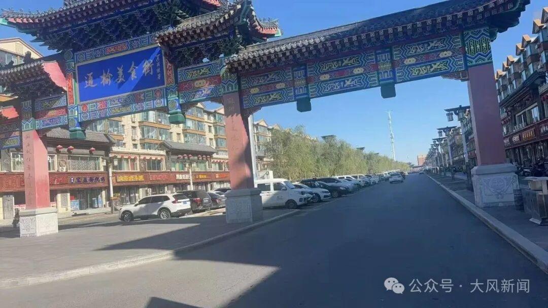 警车在后方跟着,段某开车在新发街行驶一段距离后右转进入东西向的通榆县美食街。