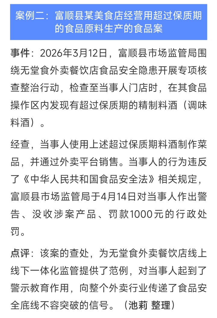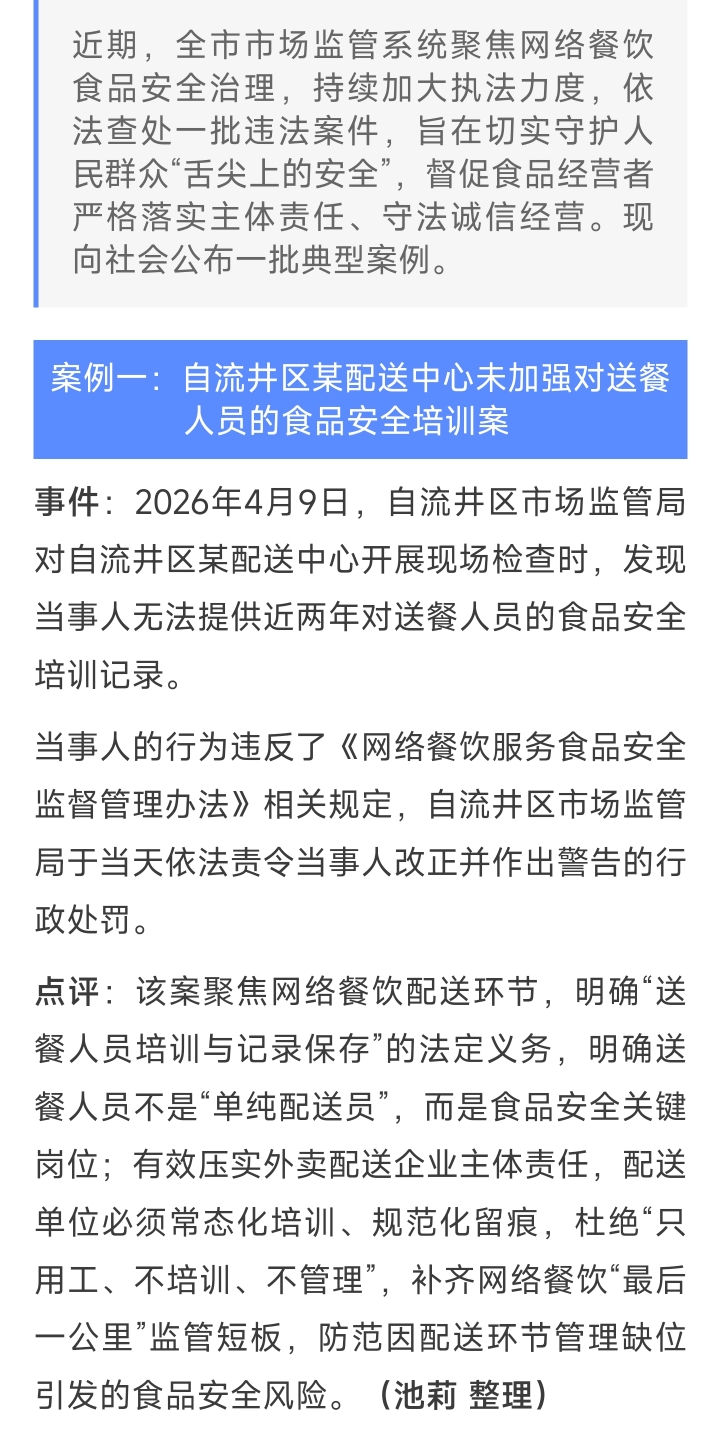 [盐都杂谈] 自贡市市场监督局公布网络餐饮食品安全整治典型案例(一至五)