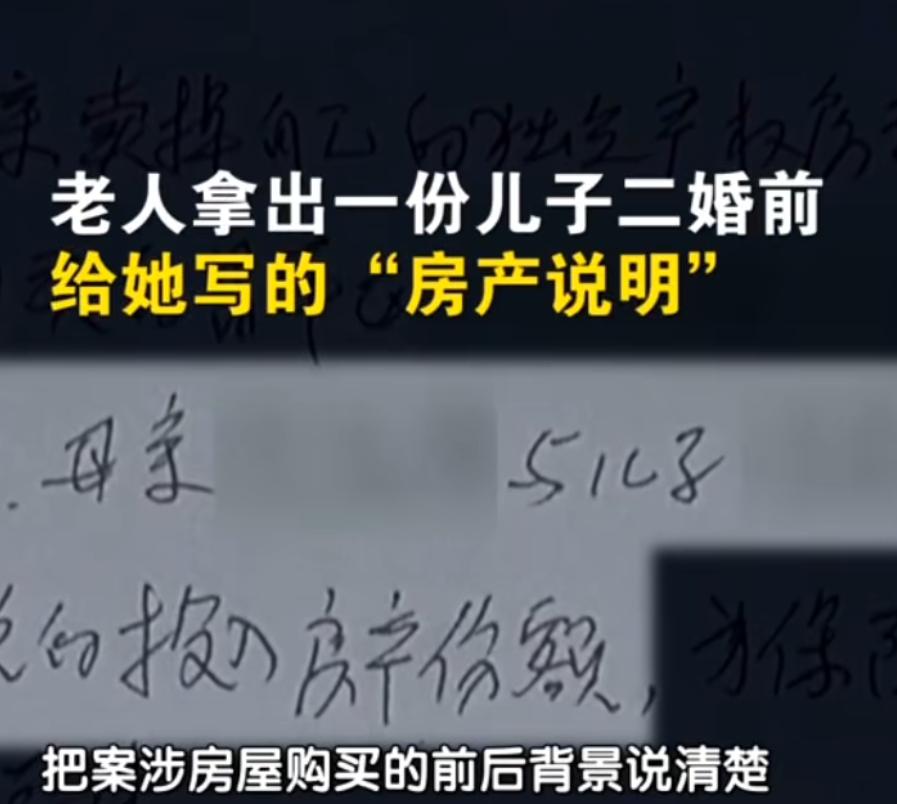 老人拿出了儿子二婚前给她写的“房产说明”,上面写着老人对这套房产也有一定份额。
