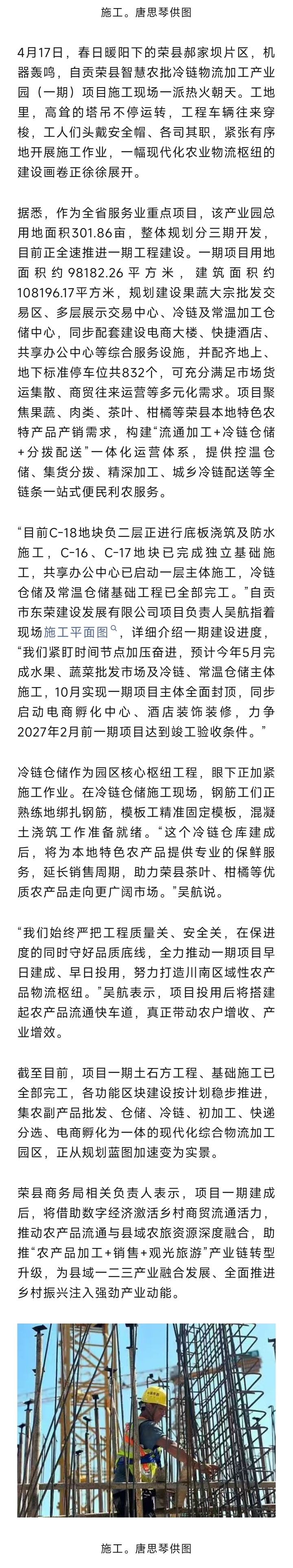 [盐都杂谈] 荣县智慧农批冷链物流加工产业园一期工程预计明年2月竣工