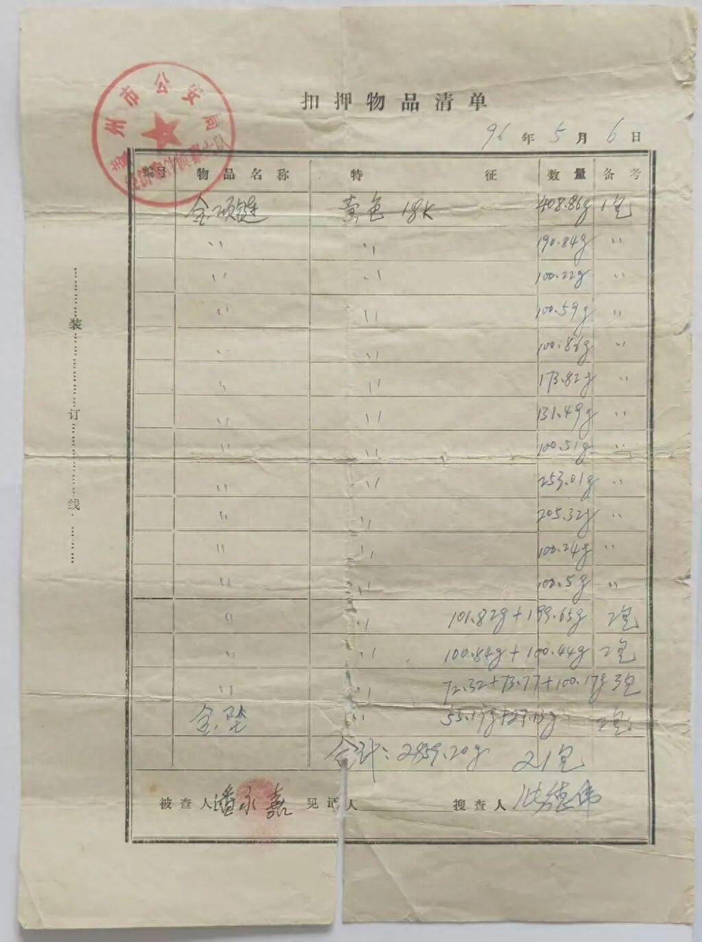 盖州警方于1996年出具的《扣押物品清单》。本文图片均由受访者供图