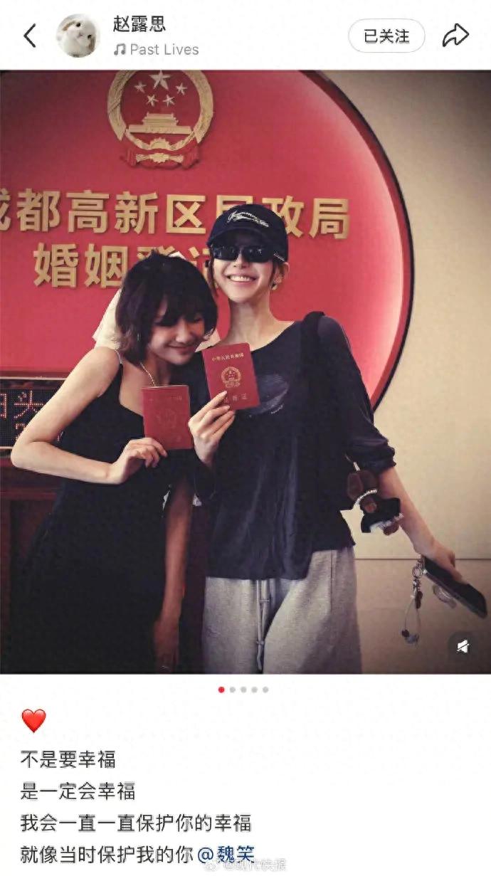 4月25日,演员魏笑领证结婚,好友赵露思全程陪同见证。