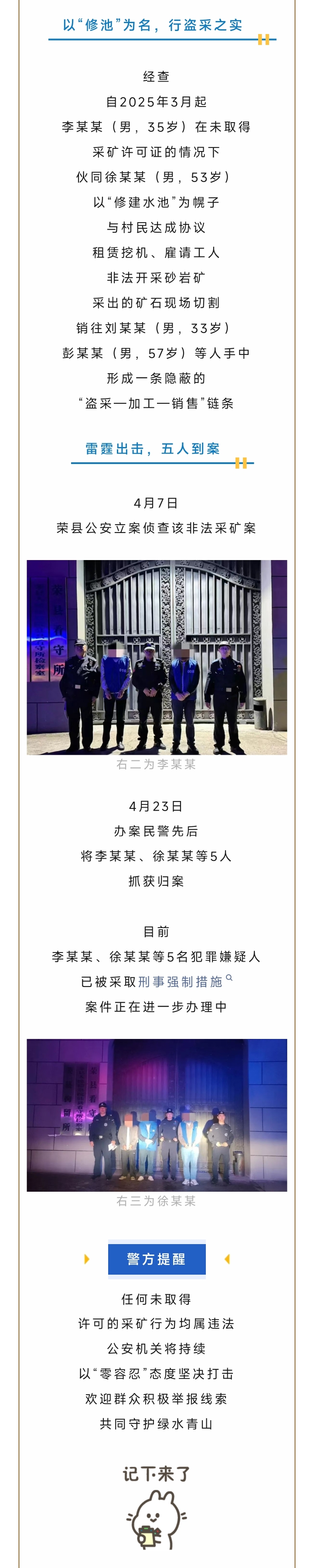 [盐都杂谈] 自贡5人被逮!打着“俢水池”的幌子非法采石,涉案金额近百万元!
