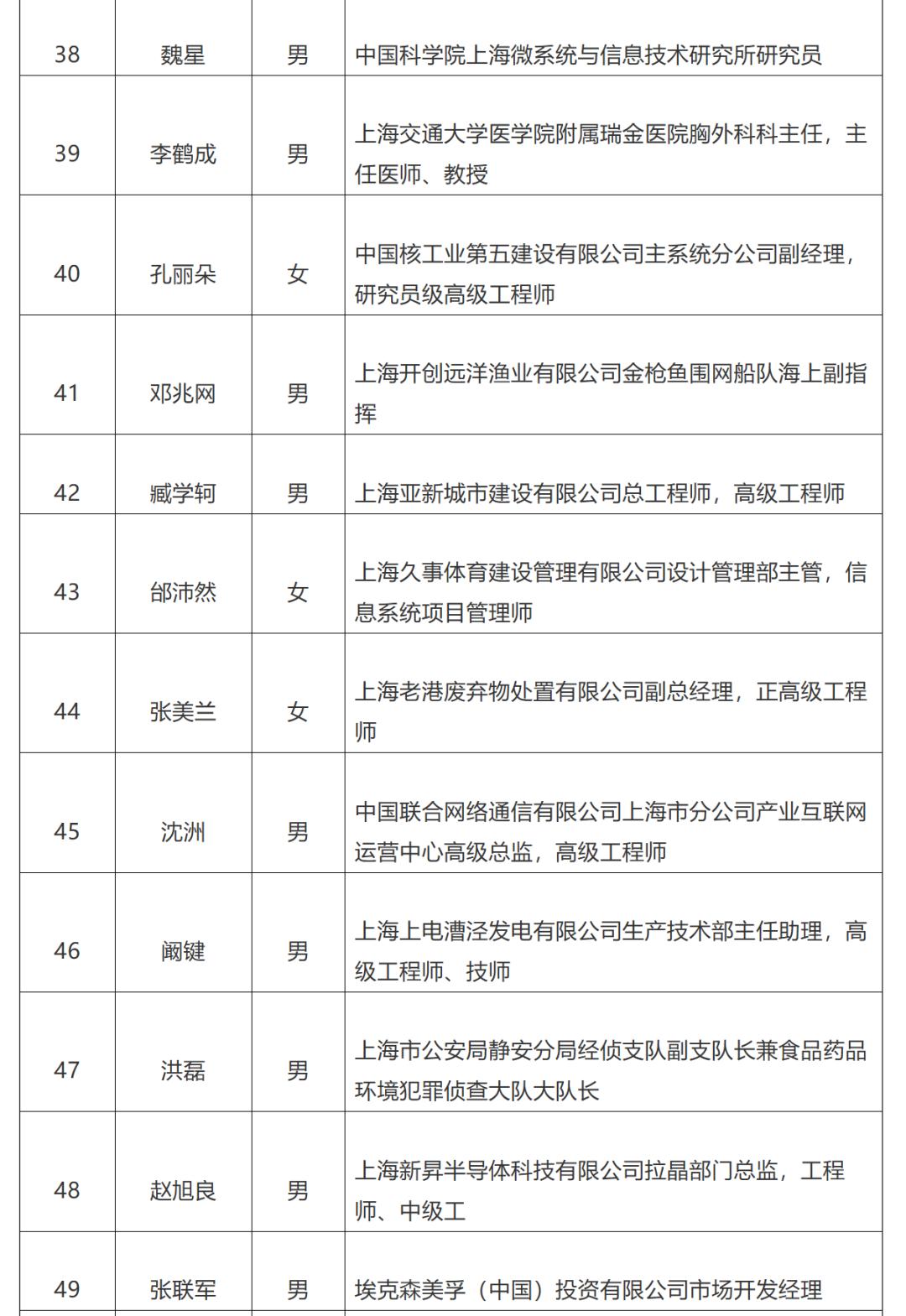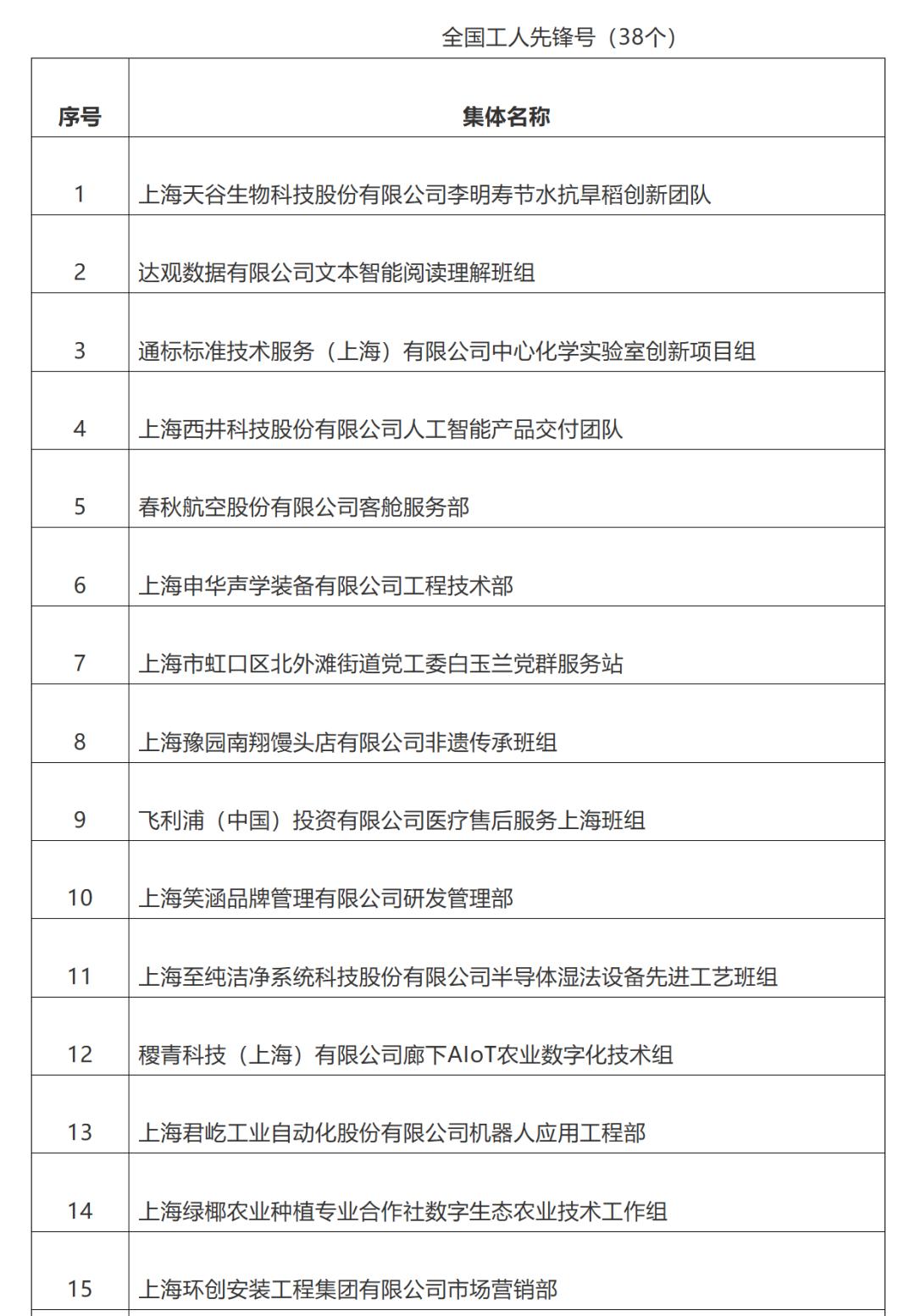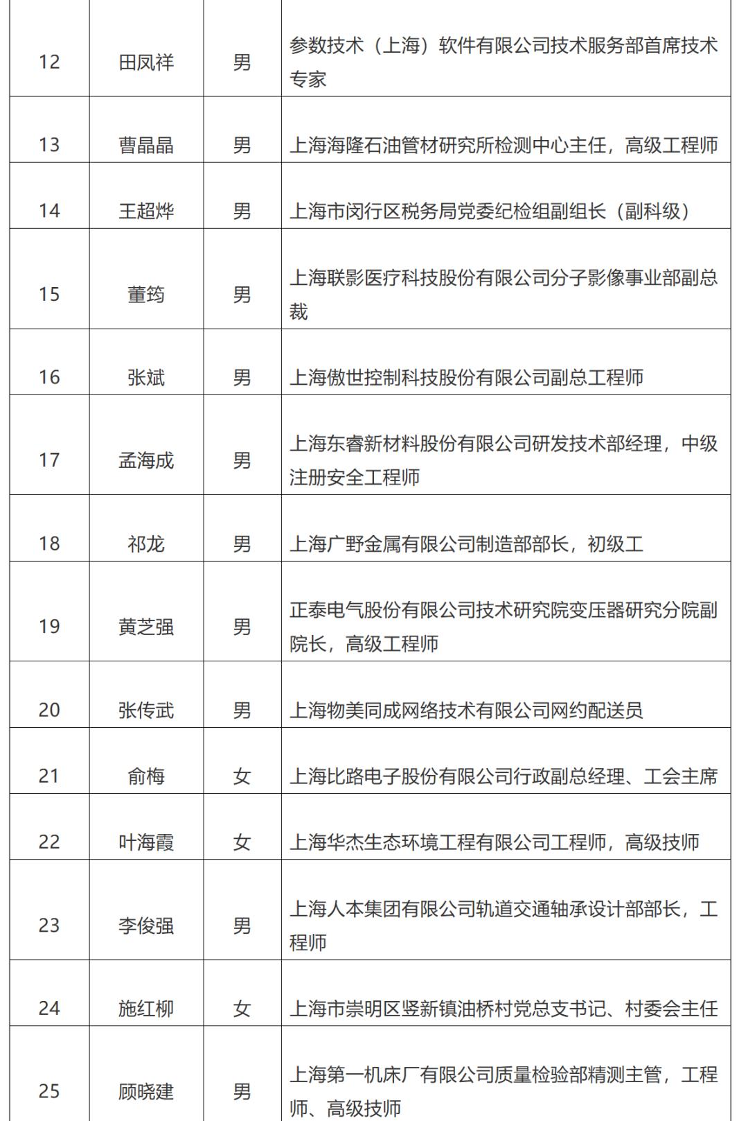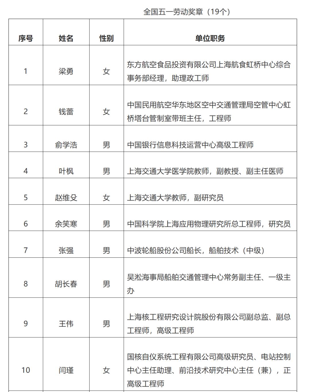 上海市推荐全国五一劳动奖对象名单