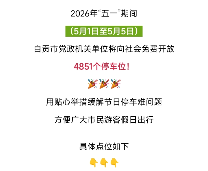 [盐都杂谈] “五一”来自贡,4851个车位免费停!