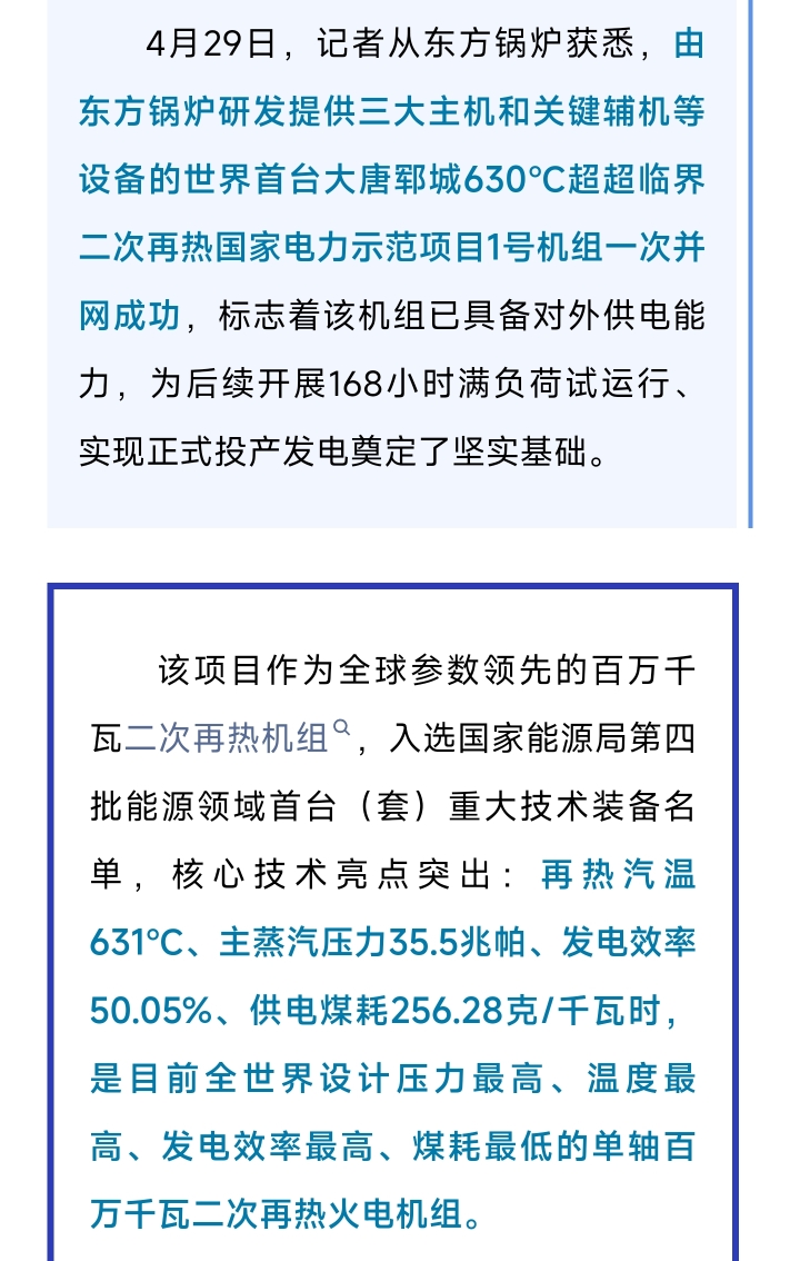 [盐都杂谈] 东方锅炉助力中国煤电技术领跑全球 世界首台630℃超超临界二次再热…